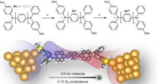 Elektricky vodivé nanodrátky složené z jediné molekuly slibují velmi zajímavé vlastnosti (miniaturizace, laditelnost…) pro elektroniku příští generace. Problém ovšem je, že s délkou molekuly účinnost přenosu elektronů po „drátku“ klesá cca exponenciálně (tedy: když molekulu prodlužujeme o nějakou „opakovatelnou“ jednotku typu CH2…). Najít nějakou skutečně dobře elektricky vodivou molekulu výrazně …