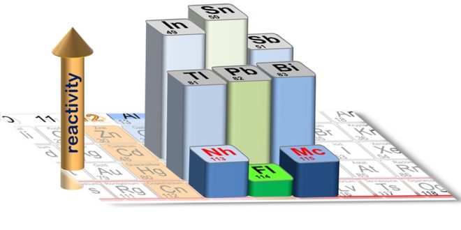 Kompletní soubor dat o těchto prvcích ukazuje, že supertěžké prvky jsou mnohem méně reaktivní než jejich lehčí homology, což se přičítá právě silnějším relativistickým relativistickým efektům (PH: chápu to tak, že těžší elektrony jsou „línější“). Flerovium má zřejmě navíc chemické slupky zaplněné nějak podobně jako vzácné plyny, tak je ještě inertnější.