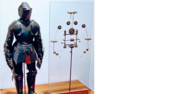 krku a dokázal zvednout hledí, snad aby ukázal svůj děsivý výraz,“ píše inženýr robotiky Mark Rosheim. „Vyroben byl ze dřeva, mosazi nebo bronzu a kůže a ovládán byl lanem.“