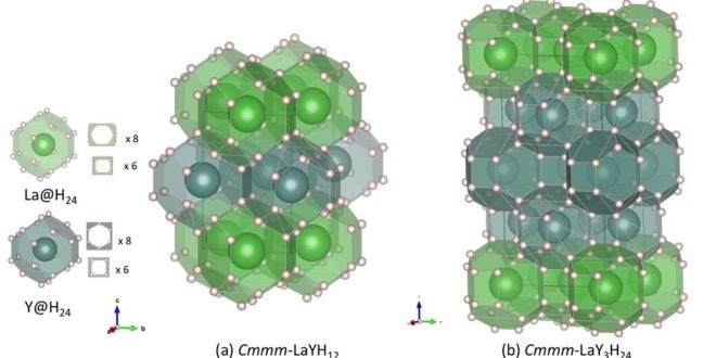 Jako nadějné vyšly struktury LaYH12 a LaY3H24, které obsahovaly „klece“ o ještě exotičtějším složení, bloky o vzorci LaH24 a YH24.