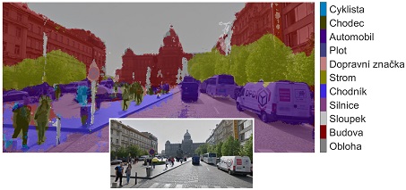 Obrázek 2: Sémantická segmentace snímku metodami deep learningu