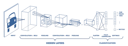 Obrázek 3: Princip fungování konvoluční neuronové sítě