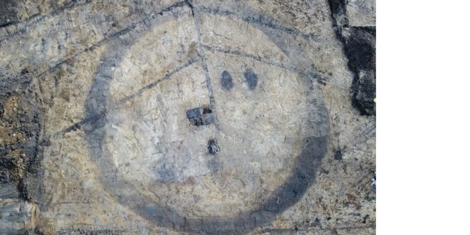 Snímek základového žlabu mohyly a centrální pohřební komory z doby halštatské. Mohyla byla narušena meliorační stavbou. © Archeologický ústav AV ČR, Praha