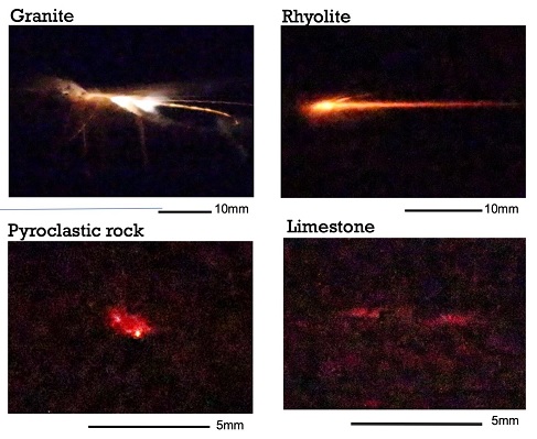 Luminscence u různých hornin následkem úderu o sebe