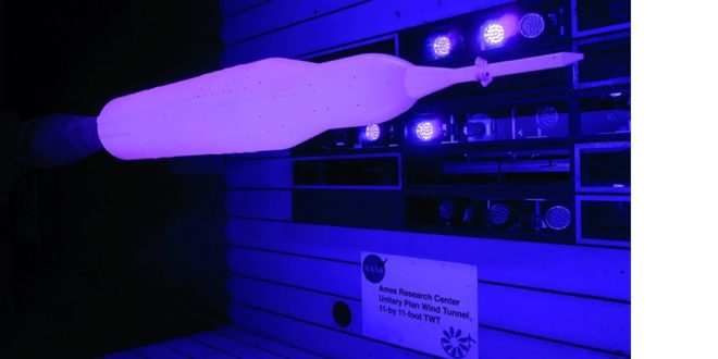 Model rakety Space Launch System ve čtyřprocentním měřítku byl v roce 2017 testován pomocí nestabilní tlakově citlivé barvy (uPSP) ve větrném tunelu Unitary Plan o rozměrech 3,3 × 3,3 m ve výzkumném středisku NASA Ames v Kalifornii. Zdroj: nasa.gov/