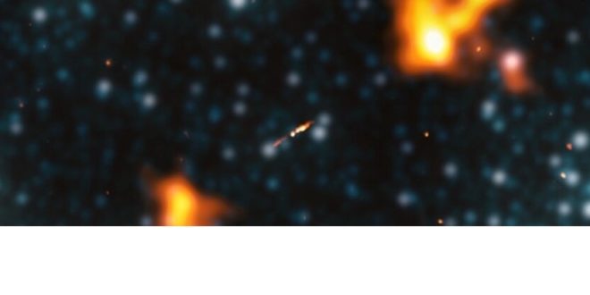 V centru mnoha galaxií se nachází superhmotná černá díra, která zpomaluje zrod nových hvězd, a silně tak ovlivňuje životní cyklus galaxie jako celku. Černá díra může vytvořit dva proudy, které stavební materiál pro mladé hvězdy vyvrhují z galaxie téměř rychlostí světla. Při tomto bouřlivém procesu se hvězdný prach zahřeje natolik, že se změní na plazmu a září v rádiovém spektru. Mezinárodní tým vědců z Leidenu Hertfortshire, Oxfordu a Paříže nyní takové záření zachytil pomocí nizozemského dalekohledu LOFAR.