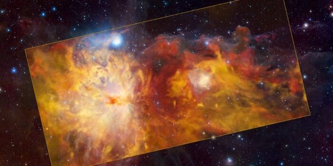 Nový záběr z produkce Evropské jižní observatoře ESO zobrazuje část souhvězdí Orion. Oblast na snímku připomíná působivý ohňostroj jako stvořený k oslavě nového roku. Není však třeba se obávat, v tomto známém souhvězdí nic nehoří ani neexploduje. V ohnivých barvách je zde zobrazena mlhovina Plamínek a její okolí na rádiových vlnách – a jistě budete souhlasit, že tento obrázek se k jejímu jménu docela hodí. Záběr byl pořízen pomocí radioteleskopu APEX (Atacama Pathfinder Experiment), který provozuje ESO na mrazivé planině Chajnantor v chilské poušti Atacama.
