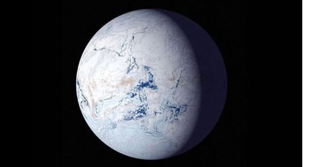 Země ve fázi sněhové koule, umělecká představa. Credit: NASA
