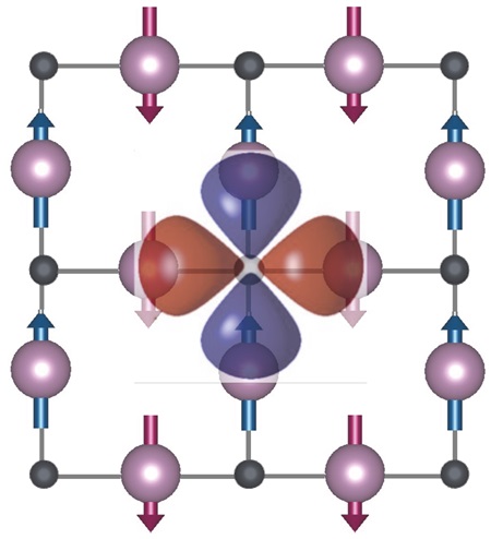 Obrázek altermagnetického uspořádání v krystalu. Zdroj: Fyzikální ústav AV ČR