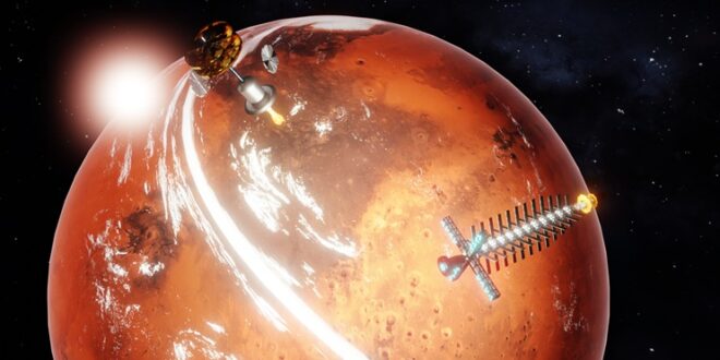 Umělecká představa kosmické lodi s jaderným pohonem poblíž Marsu. Kredit: ESA