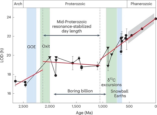 Mitchell, R.N. et al, Mid-Proterozoic day length stalled by tidal resonance, Nature Geoscience (2023). DOI: 10.1038/s41561-023-01202-6. www.nature.com/articles/s41561-023-01202-6