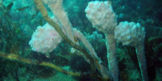 Na obrázku jiný druh sumek, Polycarpa mytiligera nežije v koloniích