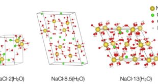 NaCl x 8,5 H2O a NaCl x 13 H2O. Na povrchu Jupiterova měsíce Europy nacházíme nápadné rudé pruhy, na povrchu Ganymedu zase podobné útvary bílé. Vědci předpokládají, že se jedná o zmrzlé směsi vody a solí, ale jejich přesnější chemický podpis zůstává dosud záhadou. Neodpovídají zřejmě žádné dosud známé látce …