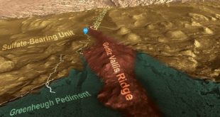Před třemi miliardami let, během jednoho z posledních vlhkých období Marsu, tekl ze svahů hory mocný proud bahna a kamenů. Tento materiál se rozlil do vějířovitého tvaru, který byl později erodován větrem a nakonec se zformoval do podoby vysokého hřebene a zachoval. Mohl se tak v něm zachovat zajímavý záznam …