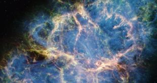 Tým vědců využil Vesmírný dalekohled Jamese Webba k rozboru složení Krabí mlhoviny. Mlhovina je pozůstatkem po supernově, nachází se ve vzdálenosti 6 500 světelných let v souhvězdí Býka. Pomocí přístrojů MIRI (Mid-Infared Instrument) a NIRCam (Near-Infrared Camera) na Webbově dalekohledu astronomové shromáždili data, která pomáhají objasnit historii tohoto podivného objektu. …