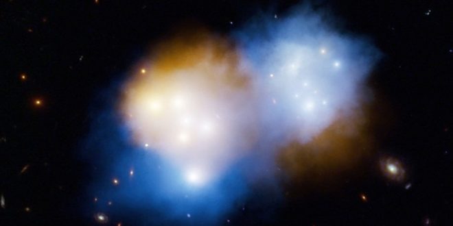 Astronomové analyzovali značně nepřehlednou srážku dvou masivních kup galaxií, při níž se obrovská oblaka temné hmoty kupy oddělila (měla oddělit) od hmoty normální. Každá z těchto dvou kup obsahuje tisíce galaxií a nacházejí se miliardy světelných let od Země. Temná hmota tu normální předběhla. Nová pozorování jsou první, která přímo zkoumají rozdělení temné a normální hmoty podle rychlosti.