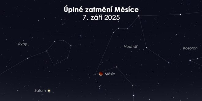 V neděli 7. září nastane za soumraku úplné zatmění Měsíce. Očima bude pozorovatelné ve své druhé polovině okolo 20:30 SELČ, kdy se bude jevit jako cihlově červený úplněk nad východním obzorem. Půjde o první úplné zatmění Měsíce pozorovatelné z našeho území po více než 6 letech. Během zatmění také bude možné vyhledat planetu Saturn.