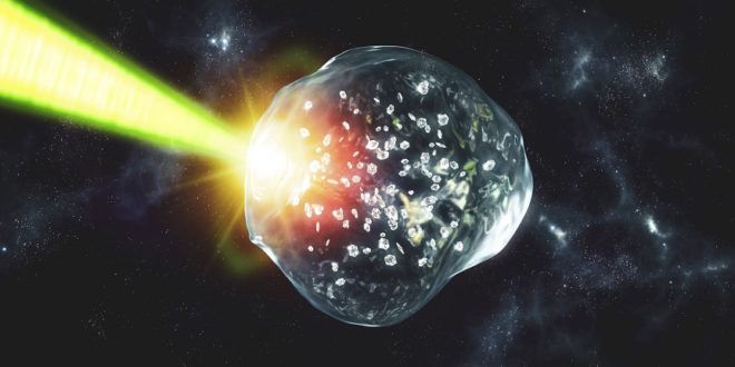 V dřívějším experimentu vědci napodobili extrémní teploty a tlaky, které se vyskytují hluboko uvnitř ledových obrů Neptunu a Uranu, a přitom poprvé pozorovali vznik diamantového deště.