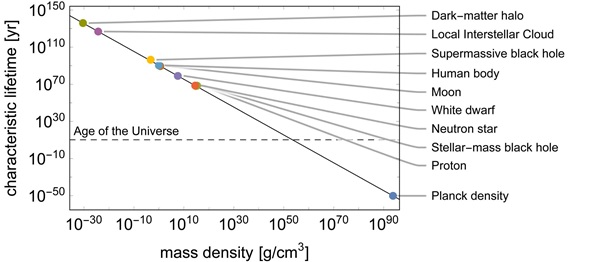 Vědci vypočítali na deseti různých objektech, jak dlouho trvá „vypařování“ prostřednictvím Hawkingova záření v ideálním prostředí bez dalších vlivů. Například lidské tělo by se tímto mechanismem rozpadlo, zaniklo za 10 na 90 let. Základní postulát zní, že Hawkingovo záření (nebo něco mu analogického) funguje nejen pro černé díry, ale pro libovolné objekty s gravitačním polem. Doba vypařování objektu závisí pouze na hustotě jejich hmotnosti. (Poznámka: Ano, lidské tělo má větší hustotu než superhmotná černá díra.)