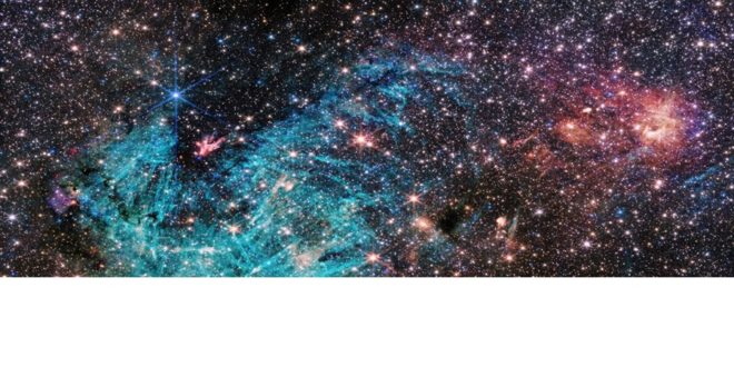 Nejnovější snímek z Vesmírného dalekohledu Jamese Webba ukazuje část hustého středu naší galaxie v dosud nevídaných detailech, včetně dosud neznámých objektů, které astronomy matou. Oblast, kde se tvoří hvězdy, Sagittarius C (Sgr C), se nachází asi 300 světelných let od centrální superhmotné černé díry Mléčné dráhy, Sagittarius A*.