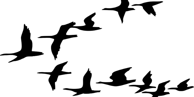 Stěhovaví ptáci často létají ve formaci, která má tvar písmene V. Nejznámějším příkladem jsou hejna divokých hus ve tvaru V, která často čítají desítky nebo dokonce stovky ptáků. Co hejno nutí zaujmout tento tvar?